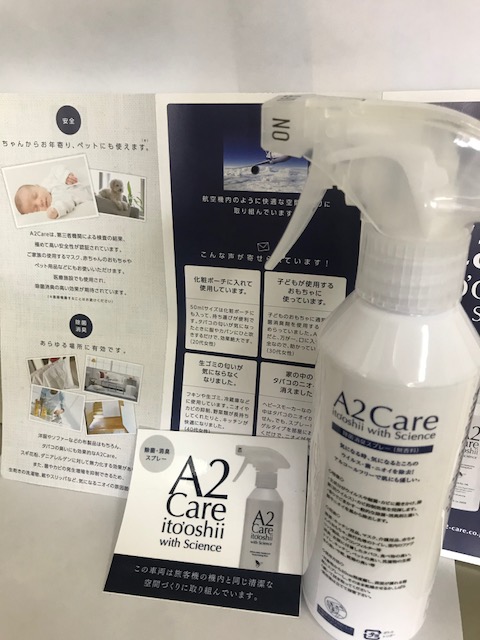 国内大手航空会社使用「A2Care」 で車内を消臭、除菌
