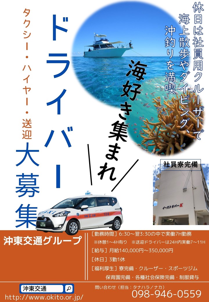 沖縄県外の方、必見!!寮完備の求人内容はコチラ!