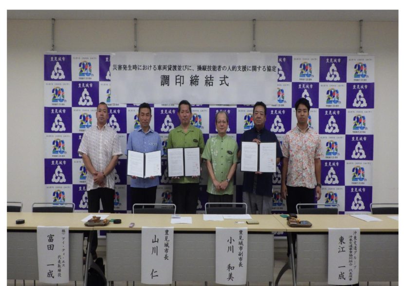 この度、豊見城市と「災害発生時における車両貸渡並びに、操縦技能者の人的支援に関する協定書」を締結いたしました。