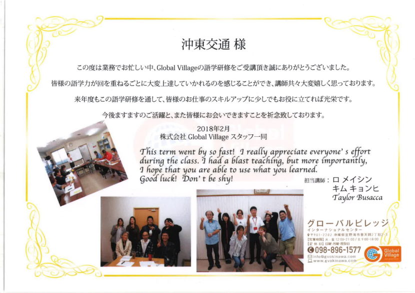 英語対応者が増えました。